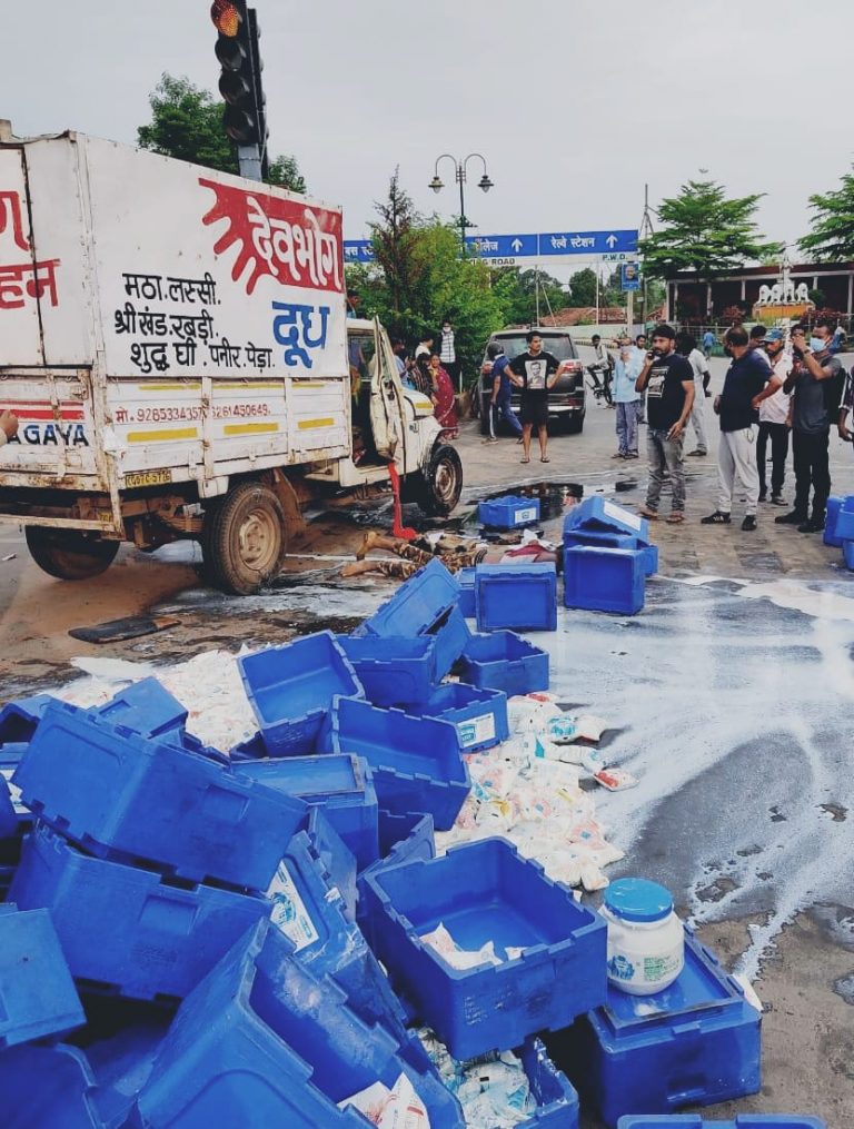 राजधानी के भारत माता चौक पर दर्दनाक सड़क हादसा हो गया. देवभोग दुग्ध से भरी डीआई वाहन सुबह पलट गई. जिससे ड्राइवर की मौत हो गई. यह पूरा मामला सिविल लाइन थाना क्षेत्र का है. मालवाहन डीआई तेलीबंधा की ओर से आ रही थी।तभी भारत माता चौक के पास तेज रफ्तार अनियंत्रित कार सामने आ गई, उससे बचने के चलते वाहन पलट गई. वाहन चालक के नीचे दबने से मौके पर ही मौत हो गई. हादसे की सूचना पुलिस को दी गई है