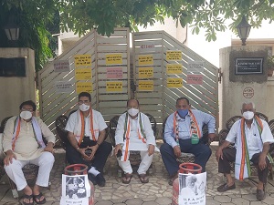रायपुर : 05/Jun/2021 🌎महंगाई के खिलाफ प्रदर्शन रमेश वर्ल्यानी साथियो सहित अपने घर के बाहर धरने पर बैठे🌍