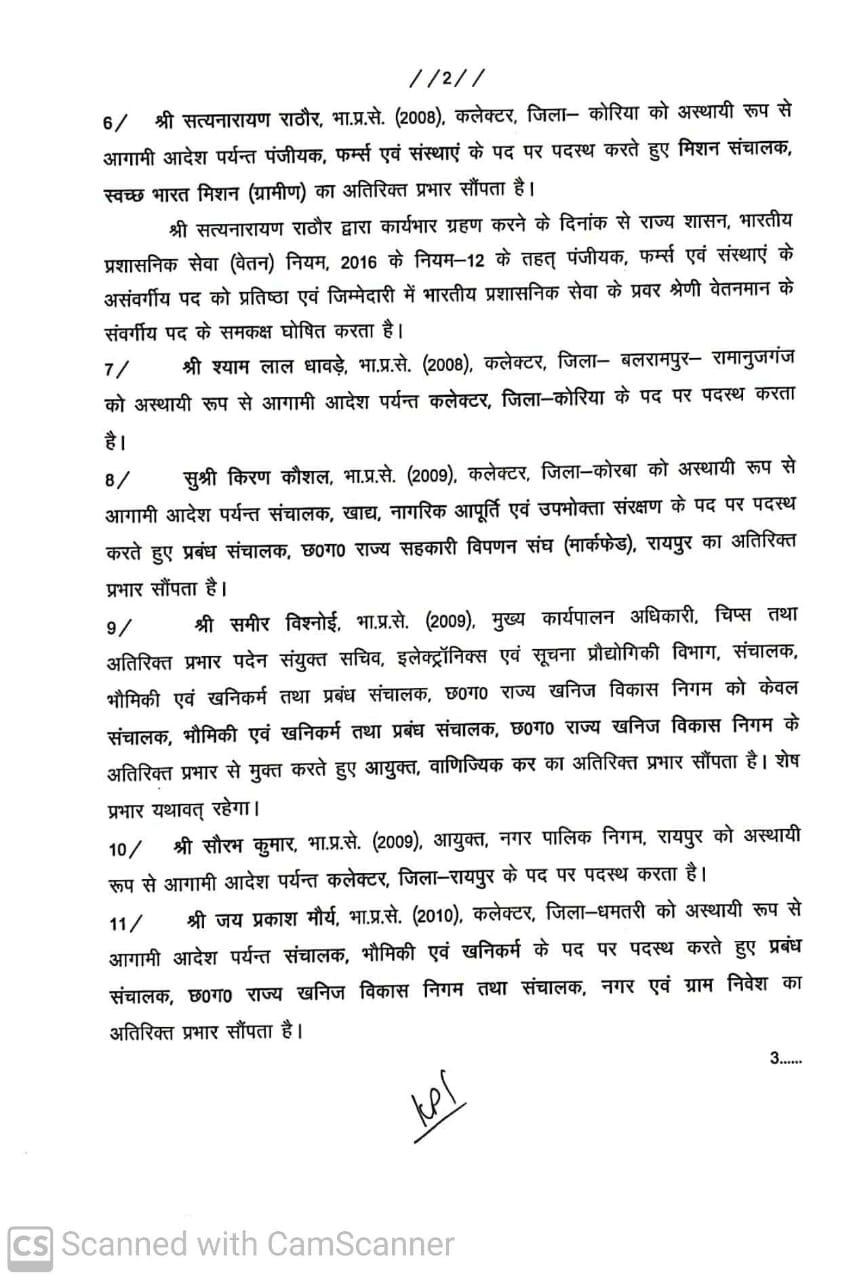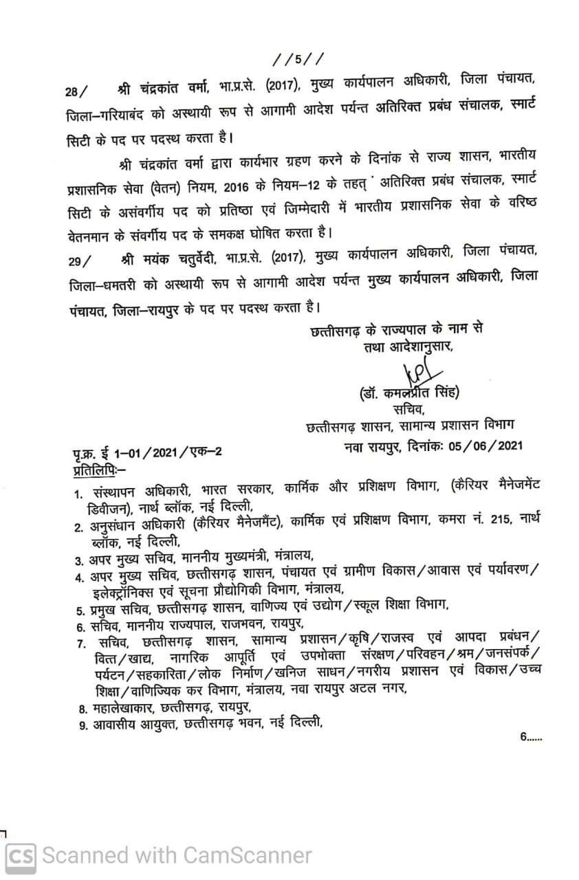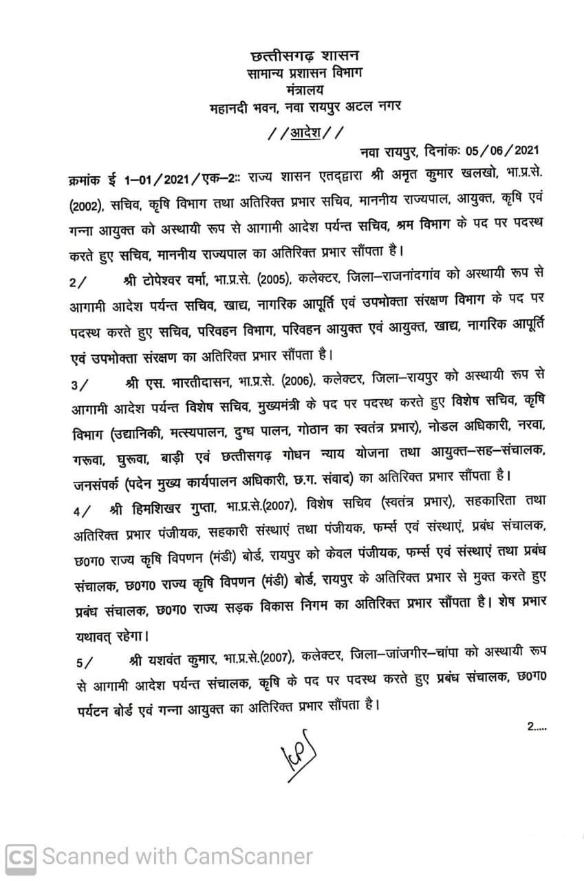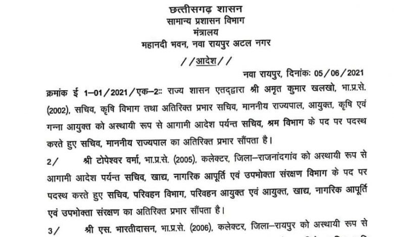 छत्तीसगढ़ प्रदेश : 05/Jun/2021 🌎 रायपुर के नए कलेक्टर होंगे सौरभ कुमार,आईएएस अफसरों को अतिरिक्त जिम्मेदारी🌍