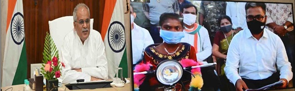 मुख्यमंत्री श्री भूपेश बघेल ने गरियाबंद जिले की दिव्यांग बालिका कुमारी गीता को आज वर्चुअल रूप से मोटराईज्ड ट्रायसायकल की सौगात दी। मुख्यमंत्री निवास कार्यालय में आयोजित वीडियो कॉन्फ्रेंसिंग के माध्यम से मुख्यमंत्री श्री भूपेश बघेल ने ग्राम छिदौली कमारपारा जनपद छुरा की रहने वाली 11 वर्षीय गीता से बड़ी आत्मीयता से बात-चीत की और उसे स्कूल आने-जाने के लिए शासन की ओर से मोटराईज्ड ट्रायसायकल मिलने पर बधाई और शुभकामनाएं दी।