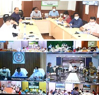 मुख्यमंत्री के निर्देशानुसार मुख्य सचिव श्री आर. पी. मण्डल ने आज चिप्स कार्यालय में उच्च अधिकारियों के साथ वीडियो कांफ्रेंसिंग जरिए कलेक्टरों, पुलिस अधीक्षकों सहित जिला अधिकारियों की बैठक लेकर आवश्यक दिशा-निर्देश दिए। इस बैठक में सभी संभागायुक्त और पुलिस महानिरीक्षक सहित अन्य वरिष्ठ अधिकारी भी शामिल हुए।