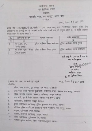 छत्तीसगढ़ प्रदेश : 🌎गृह विभाग ने दो आईपीएस अधिकारियों का तबादला आदेश जारी किया🌍