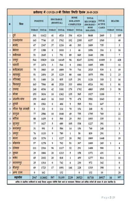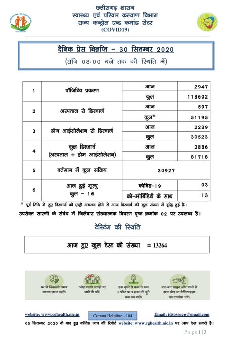 short news from citIES of CHHATTISGARH ,dated: ०१ अक्टूबर २०२०