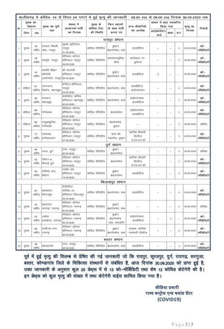 detail news only from Chhattishgarh ,dated: ०१ अक्टूबर २०२०