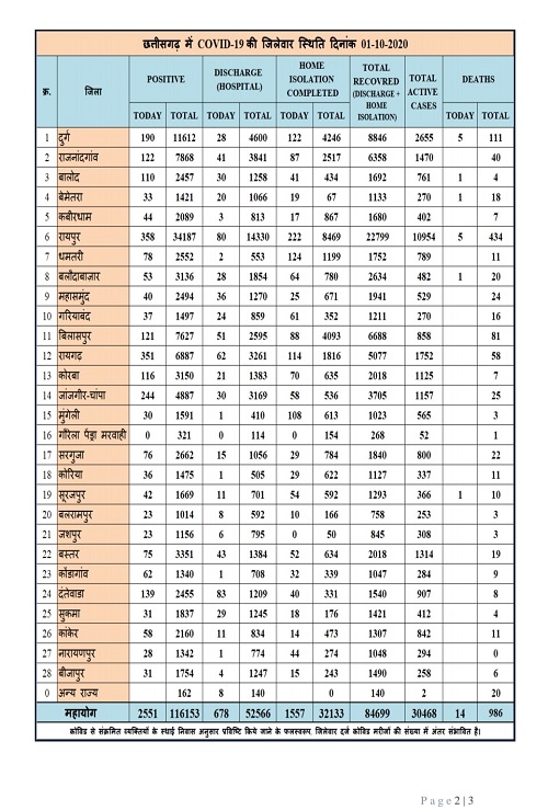 detail news only from Chhattishgarh ,dated: २ अक्टूबर २०२०