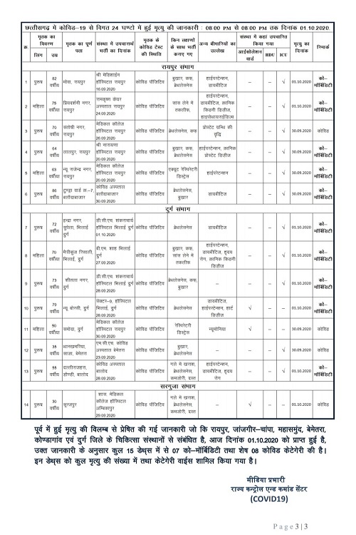 short news from citIES of CHHATTISGARH ,dated: २ अक्टूबर २०२०