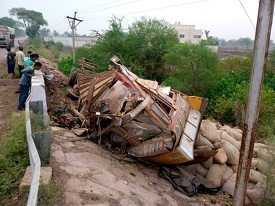 जिले के देवकर पुलिस चौकी के महज कुछ ही दूरी स्टेट हाईवे मुख्य मार्ग पर धान से भरा ट्रक अनियंत्रित होकर पलट गया. हादसे में ट्रक के चालक को गंभीर चोट आई है. सूचना मिलने पर देवकर पुलिस मौके पर पहुंची और ट्रक ड्राइवर को इलाज के लिए सामुदायिक स्वास्थ्य केंद्र साजा में भर्ती कराया.देवकर पुलिस से मिली जानकारी के अनुसार बीते रात को बेमेतरा से दुर्ग की ओर धान से भरा हुआ ट्रक जा रहा था. इसी दौरान ड्राइवर ने नियंत्रण खो दिया और ट्रक बेकाबू होकर नवीन प्राथमिक स्वास्थ्य केंद्र के पास पुलिया से टकराते नाला में जा गिरा. हादसा इतना भयानक था कि ट्रक की बॉडी चेचिस से अलग हो गई. हादसे में पास लगा 133 केवी का इलेक्ट्रिक पोल भी क्षतिग्रस्त हुआ है.