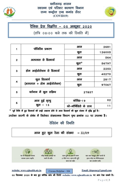 short news from citIES of CHHATTISGARH ,dated: ६ अक्टूबर २०२०