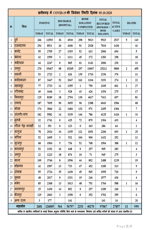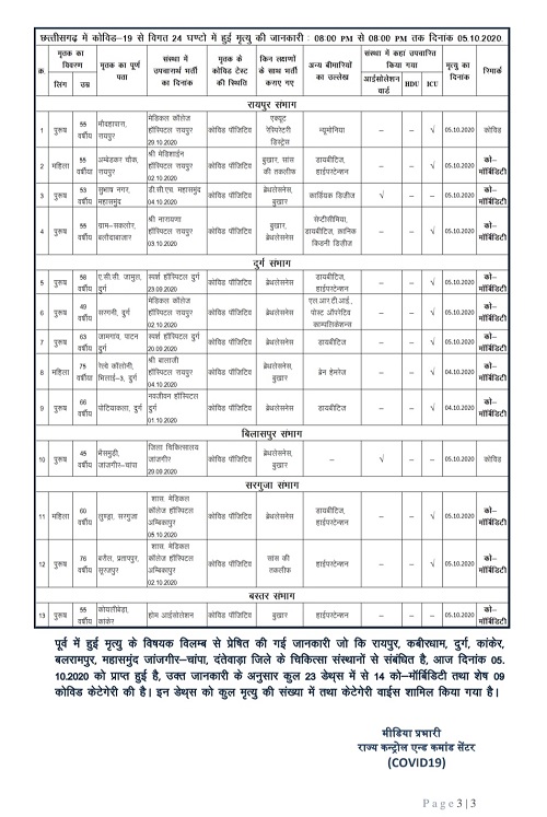 detail news only from Chhattishgarh ,dated: ६ अक्टूबर २०२०