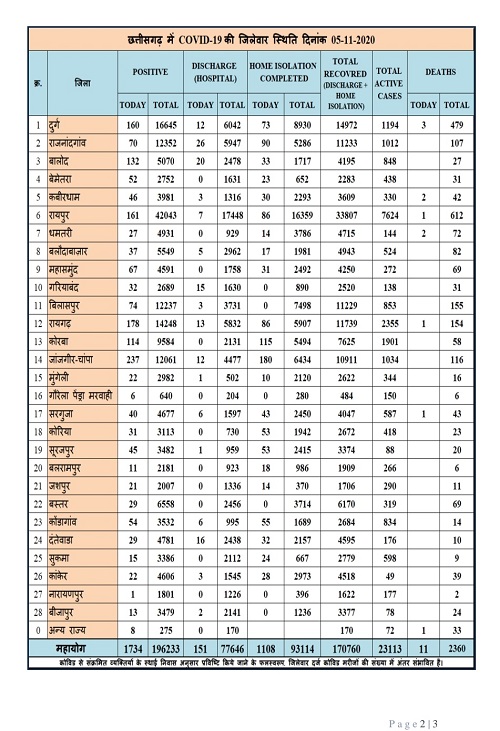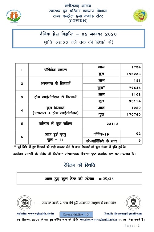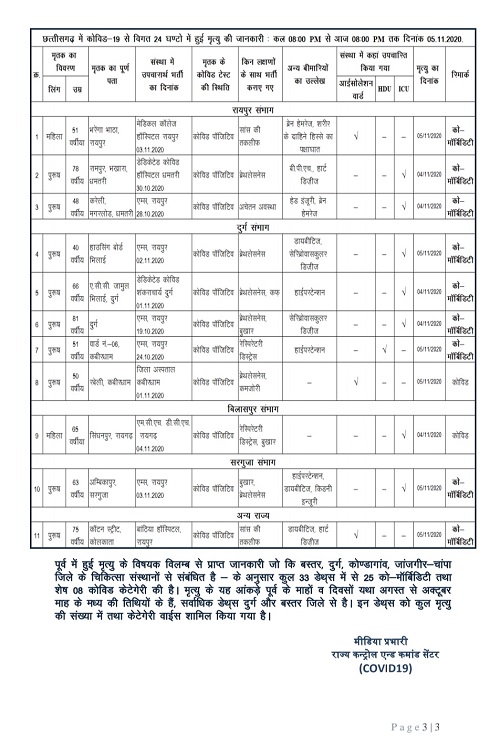 detail news only from Chhattishgarh ,dated: ६ नवम्बर २०२०