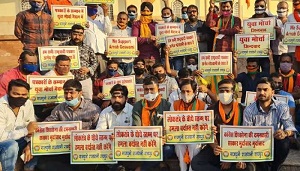 पत्रकार अर्णब गोस्वामी की गिरफ्तारी को लेकर रायपुर में भाजयुमो ने प्रदर्शन किया है। इस प्रदर्शन में भाजयुमों ने महाराष्ट्र के कांग्रेस, शिवसेना युति सरकार द्वारा लोकतंत्र के चौथे स्तंभ पर दबाव बनाने का आरोप भी लगाया है। भारतीय जनता युवा मोर्चा ने आज बाबा साहब भीमराव अंबेडकर की मूर्ति के समक्ष भाजपा अध्यक्ष श्रीचंद सुंदरानी व भाजयुमो अध्यक्ष राजेश पांडे के नेतृत्व में मौन विरोध प्रदर्शन किया।भाजपा जिला अध्यक्ष श्रीचंद सुंदरानी ने केंद्र सरकार से मांग की है कि “लोकतंत्र की हत्यारी महाराष्ट्र की कांग्रेस शिवसेना युति सरकार को निर्देशित करें कि वह पत्रकार अर्णव गोस्वामी पर दबाव पूर्ण कार्यवाही रोके अन्यथा लोकतंत्र की रक्षा के लिए ऐसे सरकार को बर्खास्त करें।”राजधानी भाजयुमो के इस कार्यक्रम में विशेष रूप से भाजपा जिलाध्यक्ष श्रीचंद सुन्दरनी, भाजयुमो जिलाध्यक्ष राजेश पाण्डे, अनुराग अग्रवाल ,महामंत्री द्वय अमित मैशरी,सचिन मेघानी, अमरजीत छाबड़ा, दिनेश सुन्दरनी सहीत बड़ी संख्या में युवामोर्चा के पदाधिकारी एवं कार्यकर्ता उपस्थित थे ।