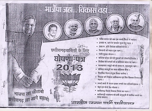 संलग्न- भाजपा के घोषणा पत्र 2013 के 2 पृष्ठ।