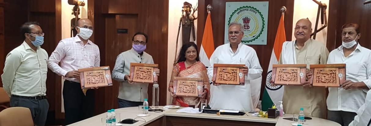 मुख्यमंत्री श्री भूपेश बघेल ने आज शाम अपने निवास कार्यालय में भारत के शास्त्रीय नृत्य परंपरा के नैतिक मूल्यों पर आधारित ‘‘नृत्य शास्त्र पौराणिक उत्पत्ति‘‘ कॉफी टेबल बुक का विमोचन किया। यह कॉफी टेबल बुक संचालनालय संस्कृति एवं पुरातत्व रायपुर द्वारा प्रकाशित की गई है। कॉफी टेबल बुक की लेखिका अंतर्राष्ट्रीय नृत्यांगना पुर्णश्री राउत, सहायक संचालक संस्कृति एवं पुरातत्व रायपुर है।