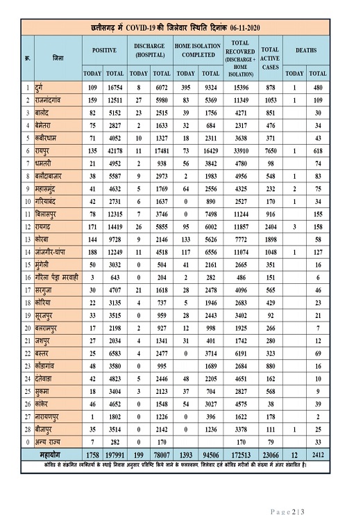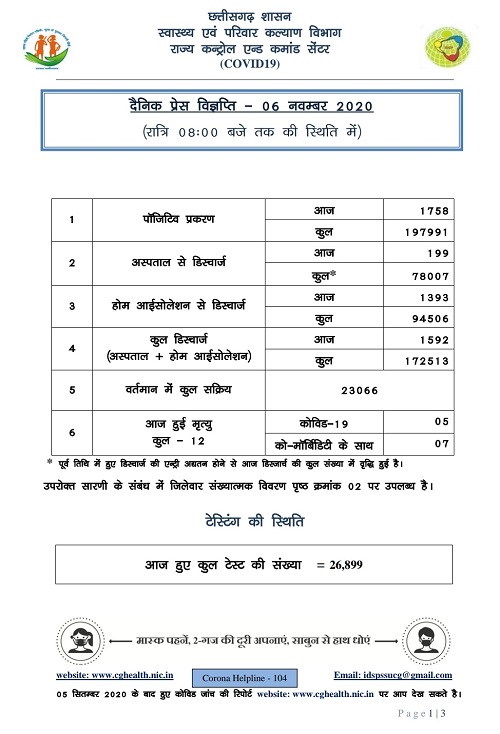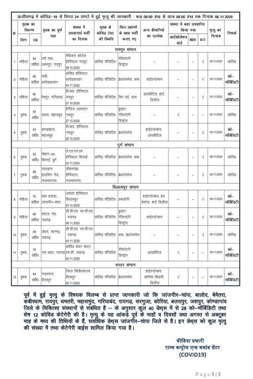 detail news only from Chhattishgarh ,dated: ७ नवम्बर २०२०