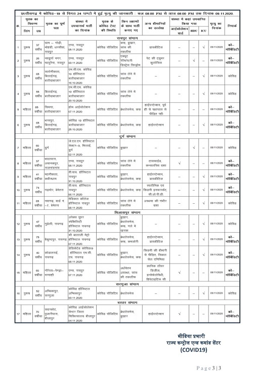 detail news only from Chhattishgarh ,dated: १० नवम्बर २०२०