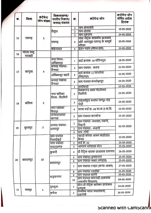 कलेक्टर श्री सत्य नारायण राठौर द्वारा नगर निगम क्षेत्र चिरमिरी के हल्दीबाड़ी में घोषित कन्टेनमेंट जोन में विगत 28 दिनों में कोई भी नए कोरोना पाजीटिव केस नहीं मिलने पर घोषित कन्टेनमेंट जोन को आज 11 जून को रात्रि 12 बजे से मुक्त कर दिया गया है। जिसके अंतर्गत मरीज के घर गुप्ता पेट्रोल पंप के पास से पूर्व दिशा में जगदीश सेटी क्लाथ स्टोर, पश्चिम दिशा में यात्री प्रतिक्षालय (एनसीपीएच ऑफिस के पहले), उत्तर दिशा में एन.सी.पी.एच. हॉस्पिटल क्षेत्र तथा दक्षिण दिशा में बरफ दफाई हल्दीबाड़ी शामिल है। उन्होंने कहा है कि इस क्षेत्र में जिन व्यक्तियों को होम क्वारेंटाईन किया गया है उनके कोरेन्टाईन अवधि तक यथास्थिति बनी रहेगी। चिन्हांकित क्षेत्र अंतर्गत सभी दुकानें एवं अन्य वाणिज्यिक प्रतिष्ठान शासन के नियमानुसार संचालित होंगे। इन क्षेत्रों में किसी भी व्यक्ति को कोरोना से संबंधित लक्षण होने पर तत्काल कंट्रोल रूम के प्रभारी श्री पी.व्ही.खेस अनुविभागीय दण्डाधिकारी राजस्व खडगवां-चिरमिरी मोबाईल नंबर 9977875252 पर सूचित करना होगा।