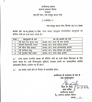 छत्तीसगढ़ प्रदेश : . 🌎राज्य सरकार ने आयोग के पाँच अध्यक्षों को कैबिनेट मंत्री का दर्जा दिया है।🌍