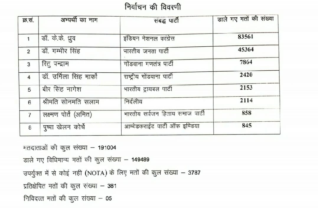 मरवाही विधानसभा के उपचुनाव में कांग्रेस प्रत्याशी के.के. ध्रुव के प्रचंड मतों से जीत पर प्रदेश कांग्रेस अध्यक्ष मोहन मरकाम ने मरवाही की जनता का आभार व्यक्त किया। प्रदेश कांग्रेस अध्यक्ष मोहन मरकाम ने कहा कि मुख्यमंत्री भूपेश बघेल सरकार के जनकल्याणकारी कार्यों पर मरवाही की जनता ने मुहर लगा दिया है। जनता ने अवसरवादी और छलप्रपंच कर बनाये गये भाजपा, छजका गठबंधन को भी नकार दिया। मुख्यमंत्री भूपेश बघेल ने मरवाही की जनता के भावनाओं के अनुरूप गौरेला-पेंड्रा-मरवाही को जिला बनाया। स्वास्थ्य केंद्र में स्वास्थ्य सुविधाएं प्रदान की, बिजली उपकेंद्र, आंगनबाड़ी केंद्र ग्राम पंचायतों को नगर पंचायत नगर पालिका में परिवर्तित किया गया। मुख्यमंत्री भूपेश बघेल सरकार के जनकल्याणकारी कार्यो से छत्तीसगढ़ के 20 लाख किसान कर्ज मुक्त हुए, किसानों को धान की कीमत 2500 रू. क्विंटल मिला, बिजली बिल हाफ, सिंचाई कर माफ, जेल में बंद निर्दोष आदिवासियों को जेल से बाहर निकालना, आदिवासियों से छीनी गई जमीन लौटाना, तेंदूपत्ता का मानक दर 2500 रू. से बढ़ाकर 4000 रू. प्रति बोरा किया गया, 14580 शिक्षकों की भर्ती, नरवा, गरवा, घुरवा, बारी के माध्यम से जल संवर्धन और हर्बल खेती को बढ़ावा, शिक्षाकर्मियों का संविलियन, राजीव गांधी किसान न्याय योजना, गोधन न्याय योजना, मुख्यमंत्री सुपोषण अभियान, मुख्यमंत्री हाट बाजार क्लिनिक, मुख्यमंत्री शहरी स्लम स्वास्थ योजना, सहित अनेक जनकल्याणकारी जिसका लाभ छत्तीसगढ़ के जन-जन को मिल रहा है। मरवाही की जनता ने मुख्यमंत्री भूपेश बघेल सरकार जो छत्तीसगढ़ को विकास की ओर अग्रसर कर रही उस पर विश्वास जताया है।