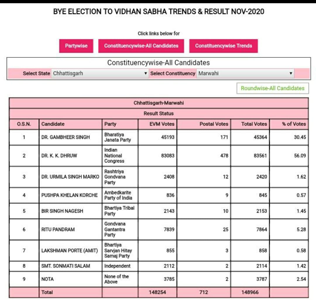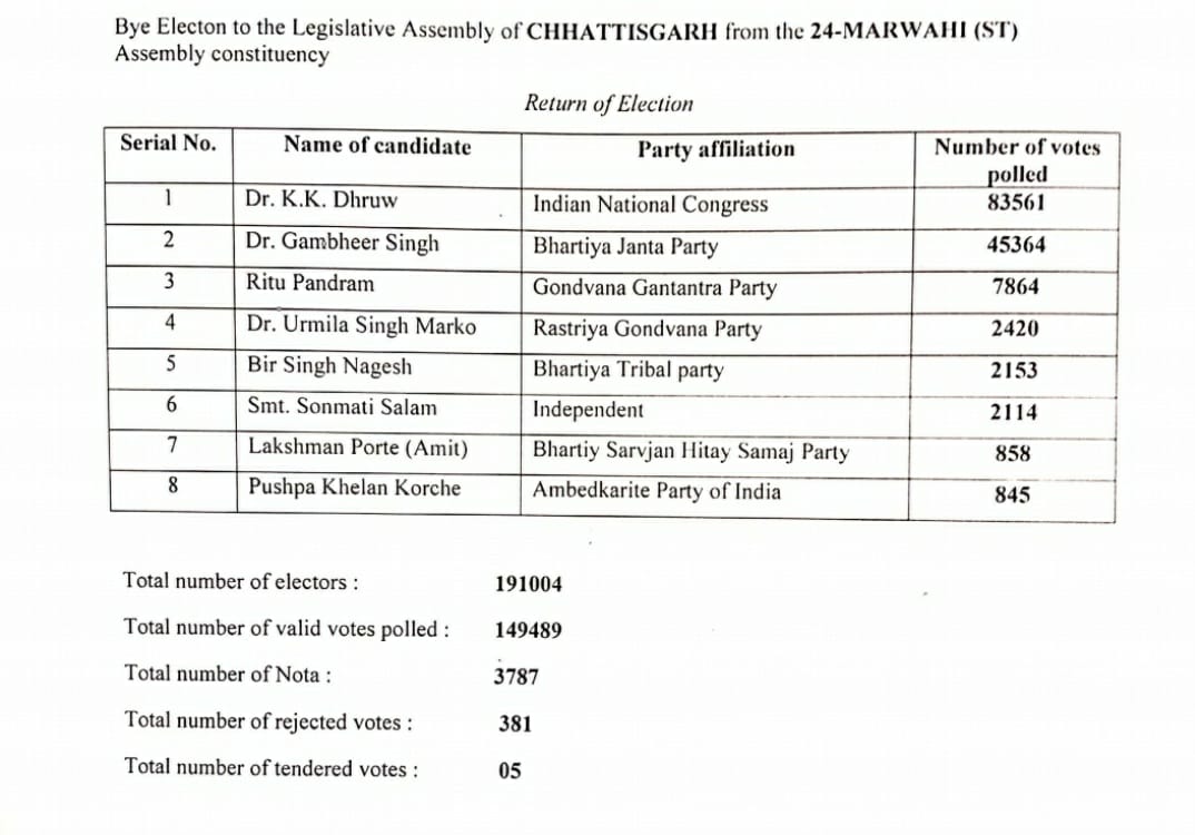 प्रदेश कांग्रेस अध्यक्ष मोहन मरकाम ने भाजपा और भाजपा के बी टीम पर हमला करते हुए कहा कि मरवाही की जनता नकली आदिवासी के चंगुल से मुक्त हुई है। रमन सिंह, भाजपा और उनके बी टीम ठगबंधन का पर्दाफाश हुआ है। 15 साल मुख्यमंत्री रहते रमन सिंह और भाजपा मरवाही की जनता का विश्वास जीतने में नाकामयाब रहे हैं। इस दौरान हुए 3 विधानसभा के चुनाव में भी मरवाही में भाजपा की करारी हार हुई है। छत्तीसगढ़ की ढाई करोड़ जनता ने विधानसभा 2018 के चुनाव में रमन सिंह के चेहरे को नकार दिया था। भाजपा के झूठे वादे और छत्तीसगढ़ विरोधी इरादे को भलीभांति पहचान चुके थे। अब मरवाही की जनता भी भाजपा और रमन सिंह और उनके बी टीम को सिरे से खारिज कर दिया। मुख्यमंत्री भूपेश बघेल की सरकार और कांग्रेस पार्टी के रीति-नीति सिद्धांतों पर मरवाही की जनता ने मुहर लगा दिया है।