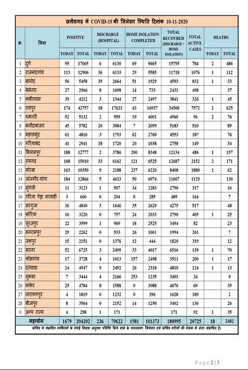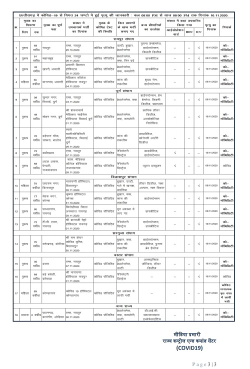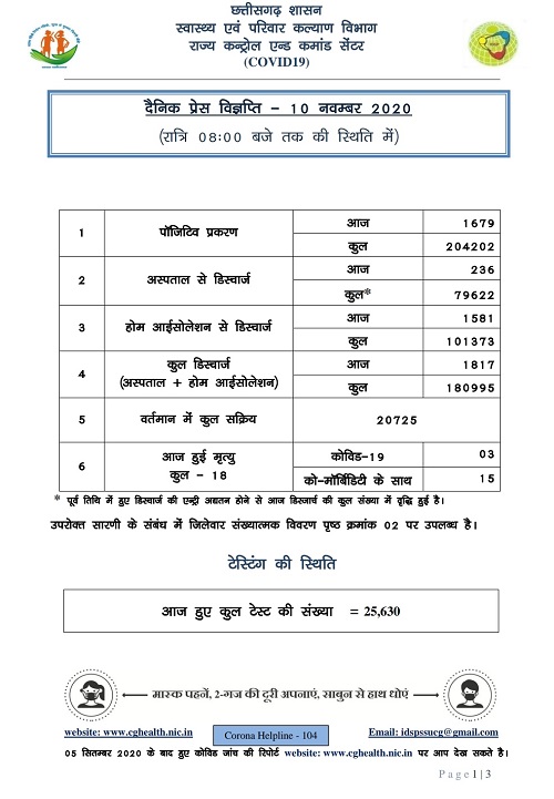 detail news only from Chhattishgarh ,dated: ११ नवम्बर २०२०