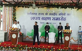 छत्तीसगढ़ में 15 संसदीय सचिंवों ने मंगलवार को पद और गोपनियता की शपथ ली। सभी संसदीय सचिवों को सीएम भूपेश बघेल ने शपथ दिलाई है। शपथ ग्रहण के बाद सीएम भूपेश बघेल ने बड़ा बयान दिया है। सीएम बघेल ने कहा है कि कांग्रेस की अगली सरकार में सभी संसदीय सचिवों का प्रमोशन होगा। अगली सरकार में संसदीय सचिवों को मंत्री बनाया जाएगा। मुख्यमंत्री भूपेश बघेल ने सभी संसदीय सचिवों को शुभकामनाएं दी है। उन्होंने कहा है कि कहा- सभी संसदीय सचिवों को अनुभवी मंत्रियों के साथ काम करने का मौका मिलेगा।.