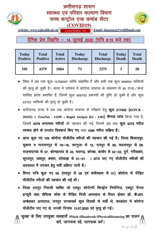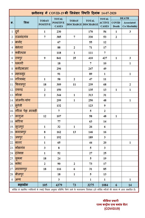 detail news only from Chhattishgarh ,dated: १४ जुलाई २०२०