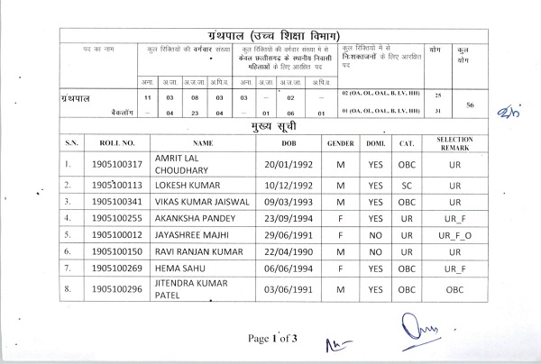 लोक सेवा आयोग से प्राप्त जानकारी के अनुसार उच्च शिक्षा विभाग के तहत ग्रंथ पाल की 56 पदों पर भर्ती के लिए 26 नवम्बर 2019 को ऑनलाइन परीक्षा का आयोजन किया गया था । जसमें 235 अभ्यर्थी शामिल हुए ।