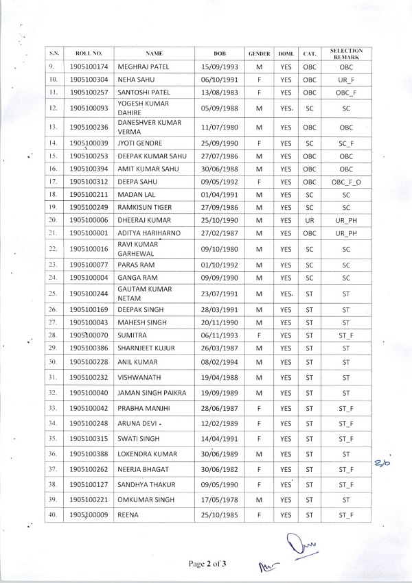 ऑनलाईन परीक्षा में विज्ञापित पदों का तीन गुना अर्थात 168 अभ्यर्थियों को वर्गवार, उपवर्गवार साक्षात्कार के लिए चिन्हांकित किया जाना था, किन्तु पात्र अभ्यर्थियों की अनुपलब्धता के कारण 86 अभ्यर्थियों का साक्षात्कार लिया गया। साक्षात्कार 10 सितम्बर से 12 सितम्बर तक लिया गया। उपरोक्त पदों से संबंधित चयन सूची, अनुपूरक सूची आयोग के वेबसाइट www.psc.cg.gov.in पर जारी कर दिया गया है।