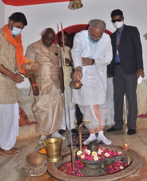 मुख्यमंत्री श्री भूपेश बघेल आज बलरामपुर-रामानुजगंज जिले के प्रवास के दौरान संत गहिरा गुरु की तपोभूमि श्रीकोट पहुंचकर सामाजिक कार्यक्रम में शामिल हुए। उन्होंने श्रीेकोट आश्रम परिसर में स्थित शिवलिंग का जलाभिषेक तथा दुर्गा मंदिर में आरती व पूजा-अर्चना की। उन्होंने गहिरा गुरु मंदिर में उनकी पर पुष्प अर्पित कर नमन किया। इस मौके पर मुख्यमंत्री श्री भूपेश बघेल ने संत गहिरा गुरू के अनुयायी संत समाज प्रमुखों से भेंट की। उन्होंने आश्रम परम्परा के अनुरूप जमीन पर बैठकर भोजन ग्रहण किया। उन्होंने संत समाज के अनुयायियों की सभा को संबोधित कर गहिरा गुरू के विचारों को वर्तमान समय में भी प्रासंगिक और प्रभावी बताया। मुख्यमंत्री श्री बघेल ने गहिरा गुरू के जीवन से जुड़े चार प्रमुख केन्द्रों के सौंदर्यीकरण के लिए 10-10 लाख रूपये की राशि प्रदान करने की घोषणा की।