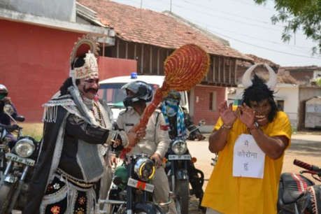 कवर्धा बाजार चारभांठा पुलिस चौकी प्रभारी गीताजंली सिन्हा के नेतृत्व में चौकी स्टॉफ ने यमराज व कोरोना का कास्यटूम पहनकर गांव-गांव जाकर लोगों को इसके बारे में जानकारी दी. पुलिस की इस पहल का लोगों ने स्वागत किया है. अन्य जगहों पर भी पुलिस लोगों को जागरूक करने के अलग-अलग तरीके अपना रही है. सामान्य तरीकों से जरा हटके के कुछ करने के प्रयास में पुलिस काफी हद तक कामयाब हो रही है. अलग तरीके से वो लोगों का ध्यान अपनी ओर खींच रहे हैं.