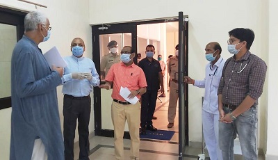 स्वास्थ्य मंत्री श्री टी.एस. सिंहदेव ने आज कोविड-19 के इलाज के लिए माना में बनाए गए विशेषीकृत अस्पताल का निरीक्षण किया। उन्होंने यहां उपलब्ध तमाम सुविधाओं की जानकारी ली और कोरोना वायरस संक्रमितों के इलाज के लिए पूरी तरह तैयार रहने के निर्देश दिए। उल्लेखनीय है कि स्वास्थ्य विभाग द्वारा राजधानी रायपुर के नजदीक माना स्थित सिविल अस्पताल को कोविड-19 के इलाज के लिए 100 बिस्तरों वाले विशेष अस्पताल के रूप में विकसित किया गया है। यहां 24 बिस्तरों का आईसीयू भी बनाया गया है। वेंटिलेटर्स सहित कोरोना वायरस संक्रमितों के हर तरह की इलाज की व्यवस्था यहां की गई है। कोरोना संक्रमित गर्भवती महिलाओं की डिलीवरी की भी व्यवस्था यहां है।
