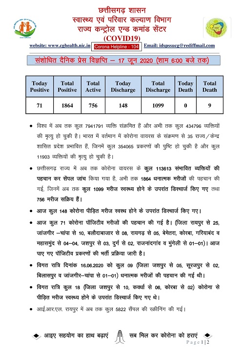 short news from citIES of CHHATTISGARH ,dated: १७ जून २०२०