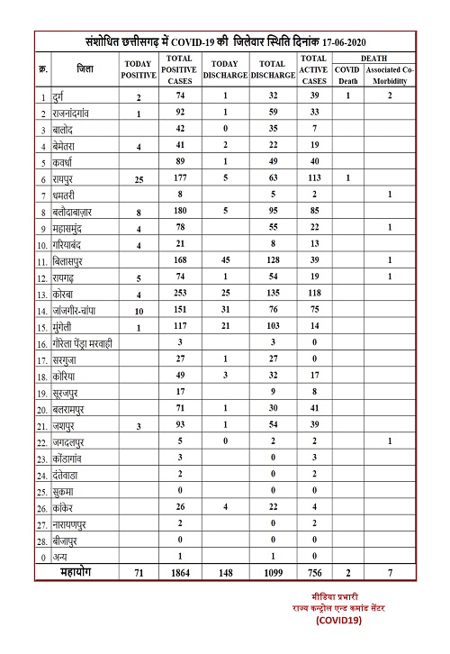 detail news only from Chhattishgarh ,dated: १७ जून २०२०