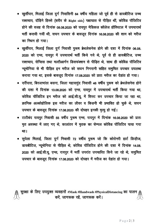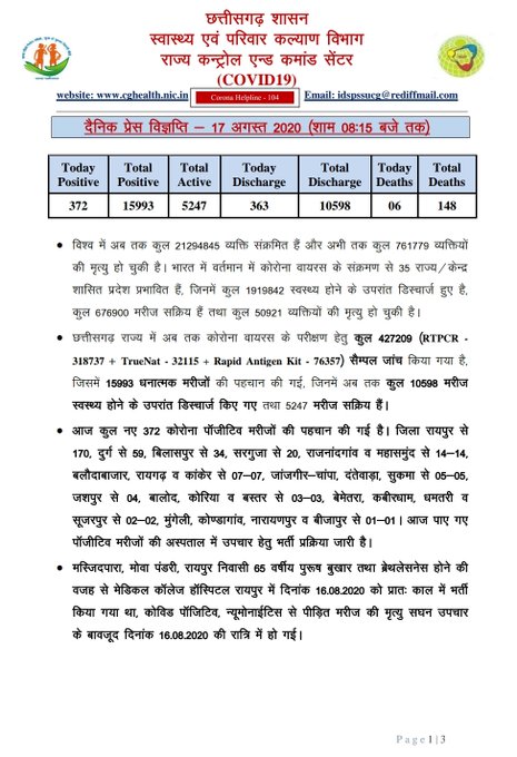 short news from citIES of CHHATTISGARH ,dated: १७ अगस्त २०२०