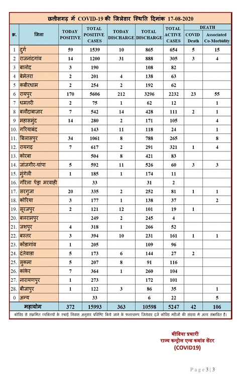 detail news only from Chhattishgarh ,dated: १७ अगस्त २०२०
