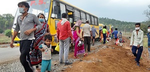 कोविड-19 के कारण लॉकडाउन में फंसे प्रवासी श्रमिकों को राहत पहुंचाते हुए मुख्यमंत्री श्री भूपेश बघेल के निर्देशन में कवर्धा जिले के धवईपानी और पोल्मी बार्डर से राज्य की सीमा तक पहुंचाने के लिए बस की व्यवस्था की जा रही है। आंध्रप्रदेश, तेलंगाना, महाराष्ट्र, उत्तरप्रदेश, मध्यप्रदेश, राजस्थान से श्रमिक और यात्री दोनों बार्डर से लगातार आ रहे है।