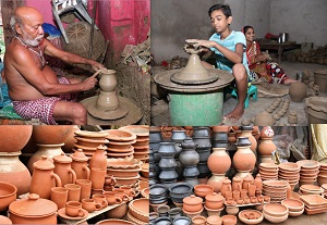 उल्लेखनीय है कि राजधानी के रायपुरा में 200 से अधिक कुम्हार परिवार अपने परंपरागत व्यवसाय से जुड़कर अपना जीवन यापन कर रहे हैं। कुम्हार समाज के सरपंच श्री भरतलाल चक्रधारी और कुम्हार श्री दिनेश कुमार चक्रधारी ने बताया कि पूरा परिवार पुश्तैनी काम से जुड़ा हुआ है। परिवार के बच्चे भी अपने माता-पिता से टेराकोटा शिल्प का गुर सीख रहे हैं। विद्युत चॉक से जुड़ा कार्य परिवार के पुरुष करते हैं और महिलाएं हाथों से बनाए जाने वाले विभिन्न प्रकार के सजावटी सामान और आकर्षक मिट्टी के सामग्री को तैयार करती हैं। उन्होंने बताया कि माटीकला बोर्ड से मिले विद्युत चॉक से जहां कार्यों में तेजी आई है, वहीं कम मेहनत के साथ मिट्टी के बर्तनों और अन्य सामग्री के उत्पादन में भी वृद्धि हुई है। मिट्टी के बर्तनों को तैयार कर रहे कुम्हारों का कहना है कि मिट्टी से तैयार बर्तन प्रदूषण मुक्त होने के साथ-साथ स्वास्थ्य के लिए भी लाभदायक है, क्योंकि इसे तैयार करने में किसी भी रसायनिक पदार्थों का उपयोग नहीं होता है। मिट्टी के बर्तनों को तेज आंच में पकाने के बाद उपयोग में लाये गए कलर का प्रभाव भी खत्म हो जाता है। मिट्टी के बर्तनों को साफ करने में जहां आसानी होती है, वहीं धातुओं के बर्तनों की सफाई पूर्ण रूप से नहीं हो पाती है। साथ ही साथ उपयोग के बाद फेंकने पर दोबारा मिट्टी में मिल जाती है इसलिए इसे प्रदूषण मुक्त मिट्टी बर्तन माना जाता है।