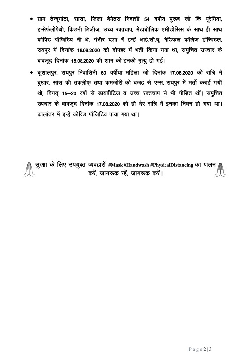 short news from citIES of CHHATTISGARH ,dated: 19 अगस्त २०२०