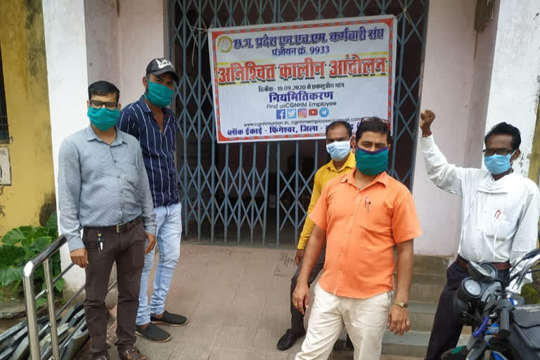 संविदा स्वास्थ्यकर्मी शनिवार से अनिश्चितकालीन हड़ताल पर हैं. छत्तीसगढ़ के लगभग 13 हजार संविदा स्वास्थ्यकर्मी नियमितीकरण की मांग के साथ सभी जिलों में हड़ताल कर रहे हैं. एनएचएम के संविदा स्वास्थ्यकर्मी नियमितीकरण की मांग कर रहे हैं.पूर्व में छत्तीसगढ़ सरकार ने चुनावी घोषणा पत्र में संविदा कर्मचारियों के नियमितिकरण की घोषणा की थी, जो पूरा होने पर संघ ने अनिश्चितकालीन हड़ताल करने का फैसला लिया है. रायपुर जिले में 350 से अधिक संविदा अधिकारी-कर्मचारी कार्यरत हैं. इनके हड़ताल पर चले जाने से कोरोना जांच और कोरोना मरीज की देखभाल के साथ-साथ अन्य स्वास्थ्य सेवाओं पर भी विपरित प्रभाव पड़ रहा है.