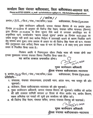 बलौदाबाजार : 21/May/2020 🌎ग्राम पंचायत सचिव को जिला पंचायत के सीईओ ने निलंबित कर दिया है🌍