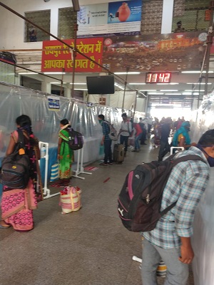 रैश्रमिकों ने लाइन में लगकर सोशल डिस्टेंसिंग बनाते हुए स्वास्थ्य परीक्षण के बाद ही स्टेशन से बाहर निकले। सभी श्रमिकों को हिदायत दी गई की वे 14 दिन क्वेरेंटाइन में रहें तथा कोरोना से बचाव एवं रक्षा के लिए सभी निर्देशों का पालन करें। श्रमिकों को क्वारेन्टाइन सेन्टर भेजने के बसों की भी व्यवस्था की गयी थी। उन्हें रेलवे स्टेशन में ही पैक्ड भोजन भी प्रदान किया गया। ट्रेन आगमन के पहले स्टेशन के प्लेटफार्म को सैनिटाइज भी किया गया।