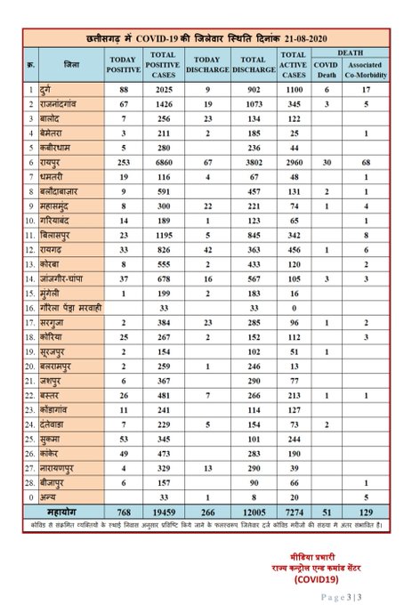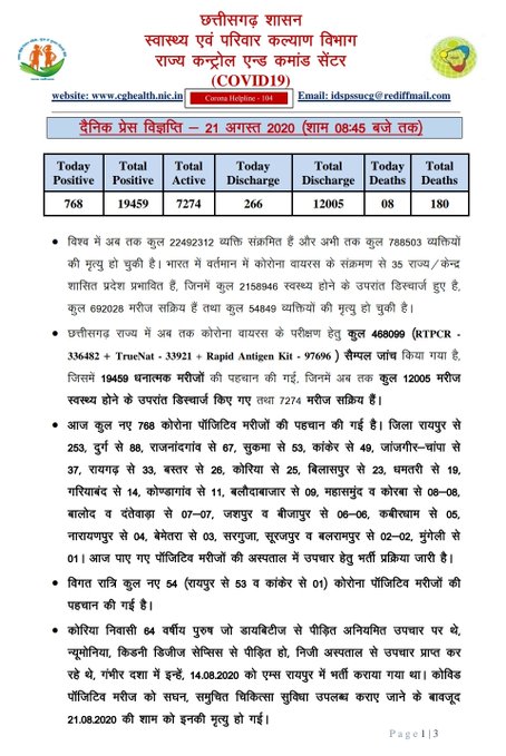 detail news only from Chhattishgarh ,dated: २१ अगस्त २०२०