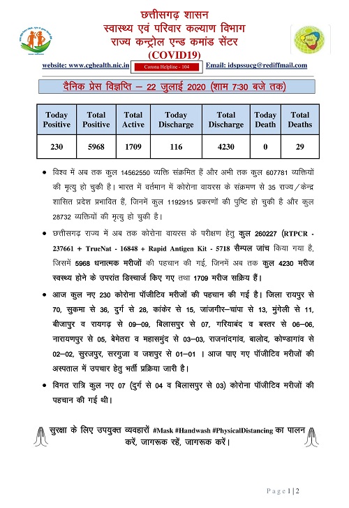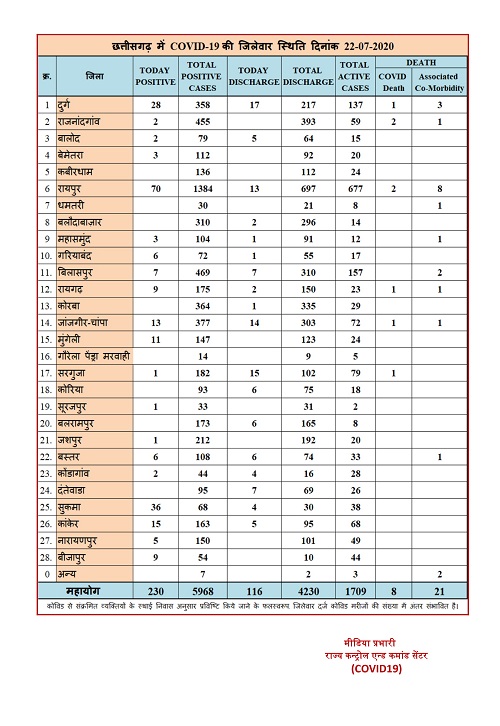 detail news only from Chhattishgarh ,dated: २२ जुलाई २०२०