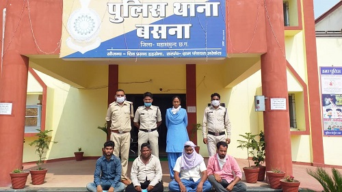 वहीं बसना थाना प्रभारी सु श्री वीणा यादव को मुखबिर से सूचना मिलने पर वार्ड नंबर 02 बसना में राजकुमार कोसरिया घर के सामने सार्वजनिक स्थान पर शराब पी रहे चार शराबियों को प्रेमनाथ बंजारा पिता पुनुराम बंजारा उम्र 49 साल निवासी खेमड़ा, राजू बंजारा पिता लाल सिंह बंजारा उम्र 28 साल साकिन कैमरा, राजकुमार कोसरिया पिता दयालाल कोसरिया उम्र 27 साल साकिन वार्ड नंबर 1 बसना,एकादशीया पटेल पिता स्व. शोभाराम पटेल उम्र 33 साल साकिन खेमड़ा। चारों व्यक्ति सार्वजनिक स्थान पर बिना किसी सुरक्षा के यह जानते हुए कोरोना वायरस का फैलाव हो रहा है एवं धारा 144 जाफौ लागू होने के संबंध में जानते हुए सार्वजनिक स्थान पर शराब पीते मिले जिनके कब्जे से 4 नग डिस्पोजल, दो नग प्लास्टिक का 1 लीटर वाला बॉटल जिसमें 100 100 ml महुआ शराब भरी हुई , दो नग पानी का बिसलेरी बॉटल जिसकी सील टूटी हुई ,दो नग पोपट कंपनी का मिक्चर का पैकेट जो फटा हुआ को को गवाहों के समक्ष जप्त कर आरोपियों का डाक्टरी मुलाहिज़ा करवाया गया जिसमें शराब सेवन होने का डॉक्टर साहब द्वारा लेख किया गया। आरोपियों के विरुद्ध धारा 188 269 270 भादवी एवं 36(च) आबकारी एक्ट का अपराध पंजीबद्ध कर जुडिशल रिमांड पर भेजा गया।