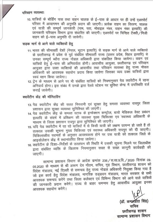 मुख्यमंत्री ने केन्द्रीय राज्य मंत्री से अनुरोध किया है कि राज्यों को प्रत्येक उड़ानों की जानकारी उपलब्ध करायी जाए, जिसमें उस राज्य में आने वाले यात्रियों का विस्तृत विवरण सम्मिलित हो। हवाई यात्रा करने वाले सभी यात्रियों की 14 दिन कोरेन्टाईन (केवल राज्य सरकार द्वारा संचालित एवं पेड कोरेन्टाईन) पर रहने को अनिवार्य किया जावे। कोरेन्टाईन संबंधी शर्त एवं अनिवार्यता की जानकारी यात्रियों को टिकिट बुक करने के समय ही प्रदान की जाए ताकि वे नियमों से भलीभांति परिचित रहें। उपरोक्तानुसार प्रभावी दिशा निर्देशों के तहत उड़ान प्रारंभ करने से राज्य सरकारों को कोविड-19 महमारी के नियंत्रण एवं बचाव के संबंध में आवश्यक कार्यवाही किये जाने में सुविधा होगी।मुख्यमंत्री ने पत्र में उम्मीद जताई है कि उपरोक्त सुझावों पर गंभीरता से विचार करते हुए सख्त एवं प्रभावी गाईड लाईन के साथ घरेलू उड़ान संचालन की कार्यवाही प्रारंभ की जाएगी।