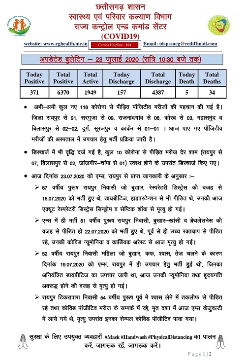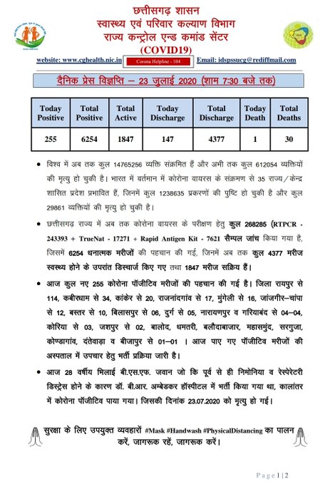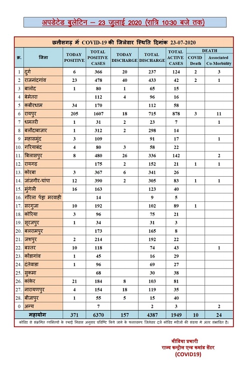छत्तीसगढ़ प्रदेश : 23/Jul/2020 🌎 .🌍