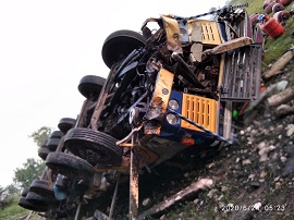 महासमुन्द : 24/Jun/2020 🌎कांपा तुमगांव के पास पुलिया में पलटा LPG सिलेंडर से भरा ट्रक 🌍