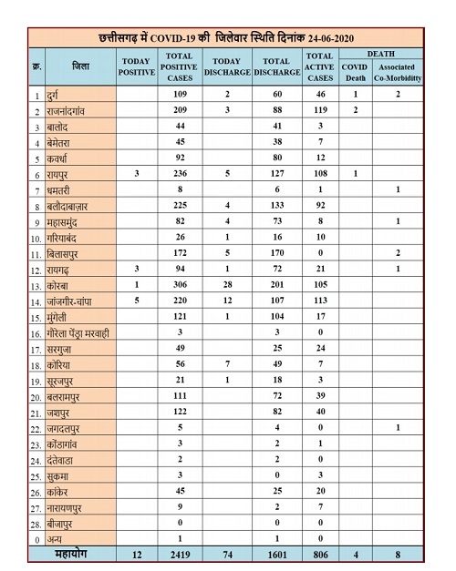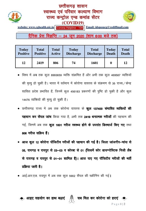 detail news only from Chhattishgarh ,dated: २४ जून २०२०