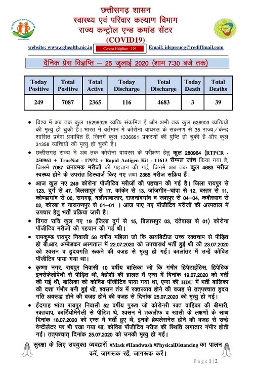 detail news only from Chhattishgarh ,dated: २५ जुलाई २०२०