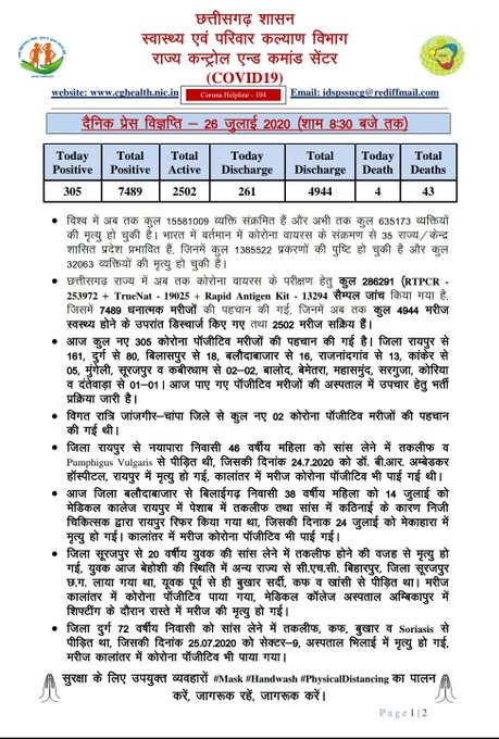 छत्तीसगढ़ प्रदेश : 26/Jul/2020 🌎 .🌍